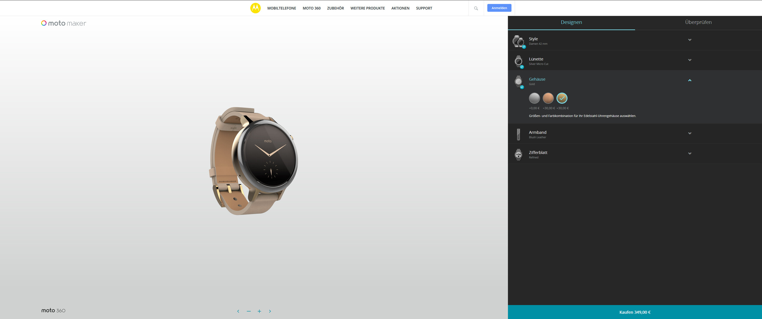 Der Konfigurator ist sehr schlicht und übersichtlich gehalten und lässt sich selbst in der mobilen Variante sehr gut mit den Fingern bedienen. Beim Anpassen der Smartwatch an den eigenen Geschmack wird der Käufer Schritt für Schritt durch den Prozess geführt.