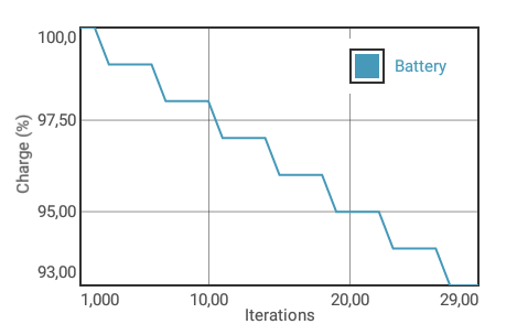 Ob die Grafikkarte oder CPU unter Lasst drosselt, finden wir heraus, indem wir den Akku-Test des GFXBench auf dem Lenovo Smartphone laufen lassen. Hier wird dreißigmal dieselbe Sequenz gerendert. Die erreichten Ergebnisse zeigen eine schwankende Framerate. Allerdings sind die Schwankungen mit etwa 1 Prozent nicht wirklich hoch. Somit ist erkennbar, dass die Leistung minimal schwankt, ein Drosseln unter Lastbedingungen aber insgesamt unwahrscheinlich ist.