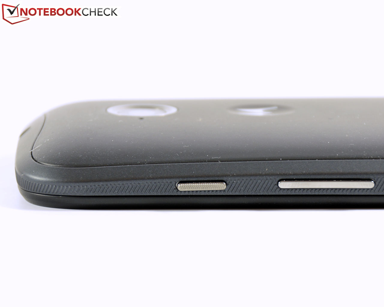 In puncto Haptik blieb Motorola nahe am Vorgänger Moto E. Kein Wunder, liegt doch das Moto E auch in der zweiten Generation toll in der Hand und ist aufgrund des gummierten Kunststoffgehäuses angenehm griffig. Die Optik wurde hingegen deutlicher verändert. Der zweite Lautsprecher unterhalb des Displays fiel dem Rotstift zum Opfer. Auch die Zugänglichkeit der Micro-SIM- und microSD-Ports wurde verändert. Nun ist nicht mehr die gesamte Rückseite, sondern lediglich das Akzentband, das auch die physikalischen Tasten beherbergt, abnehmbar. Dadurch hat die Stabilität weiter gewonnen, denn das Smartphone widersteht auch hartnäckigen Verwindungsversuchen erfolgreich. Einzig das Display reagiert auf allzu festen Druck mit leichten Verfärbungen. Der Akku bleibt fest verbaut. Die Spaltmaße sind äußerst gleichmäßig ausgeführt und die Verarbeitungsqualität lässt den niedrigen Preis nicht vermuten.