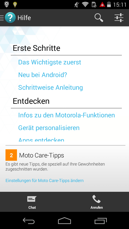 Das Moto E ist in diesem Bereich up-to-date ausgestattet, denn Android in Version 4.4.2 (KitKat) ist vorinstalliert. Da in den kommenden Tagen die Auslieferung von Version 4.4.3 beginnt, sind wir gespannt, wann genau das Update für unser Testgerät angeboten wird. Wie auch bei Modellen der Nexus-Serie, befindet sich beim Moto E eine nahezu unberührte Version auf dem Smartphone. Positiv für die Performance, denn die Hardware wird nicht durch unnötige Software-Zugaben ausgebremst. Lediglich ein paar Zusatz-Apps wurden vom Hersteller integriert, haben jedoch durchaus eine Daseins-Berechtigung. Ein Beispiel ist der „Assist“, denn damit schaltet sich das Smartphone stumm, wenn man beispielsweise in einer Besprechung ist. Dies wird durch vorhandene Einträge im Kalender erkannt. Eine generelle Stummschaltung in den Nachtstunden oder während der Arbeitszeit ist hingegen auch möglich.
