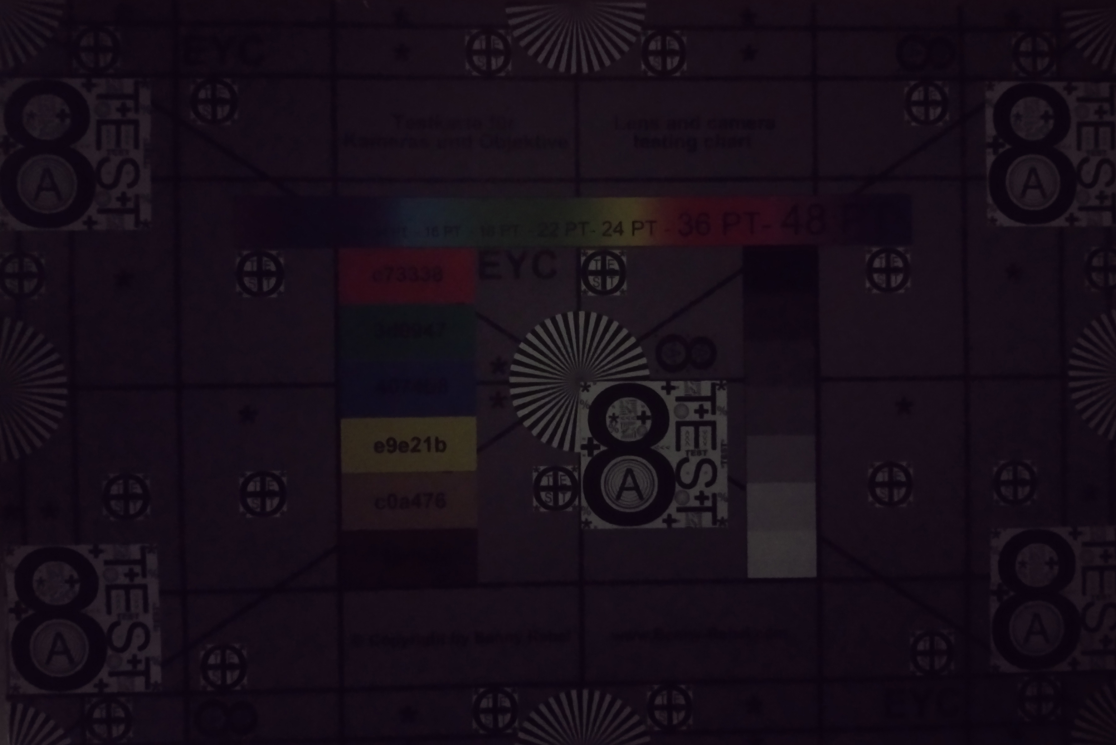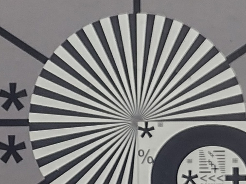 Sieht man sich das Testchart aus unserer Laboranalyse bei 1 Lux Beleuchtungsstärke an, so sind dort immer noch einige Details erkennbar. Die Qualität ist keineswegs auf dem Niveau von High-End-Kameras, aber für die Preisklasse durchaus ordentlich.