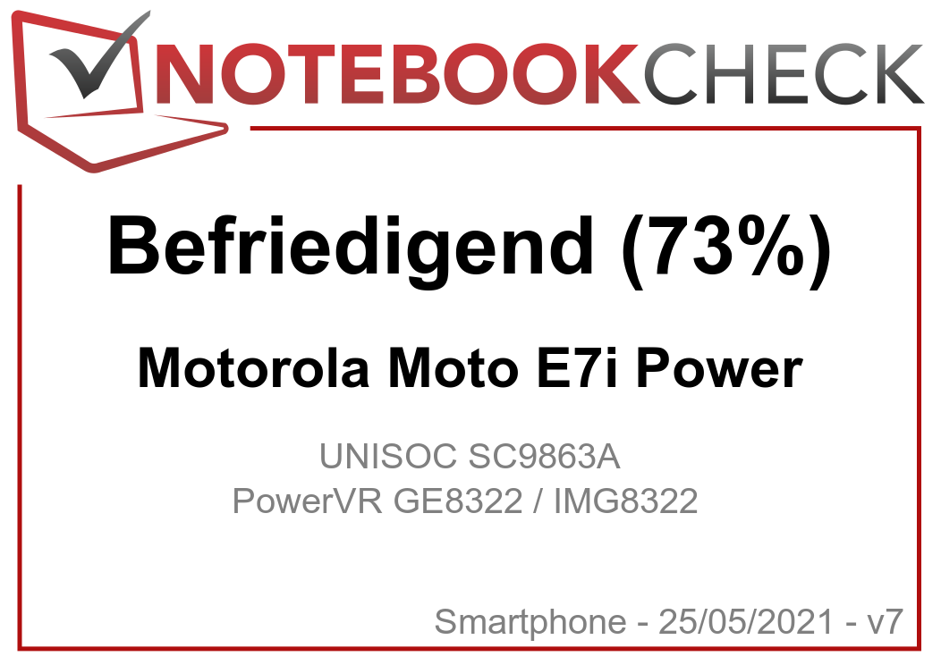 | 73.2 % v7 (old) | v7 (old) | 05 / 2021 | Motorola Moto E7i Power SC9863A, GE8322 / IMG8322 | 200 g | 32 GB eMMC Flash | 6.50" | 1600x720 | |