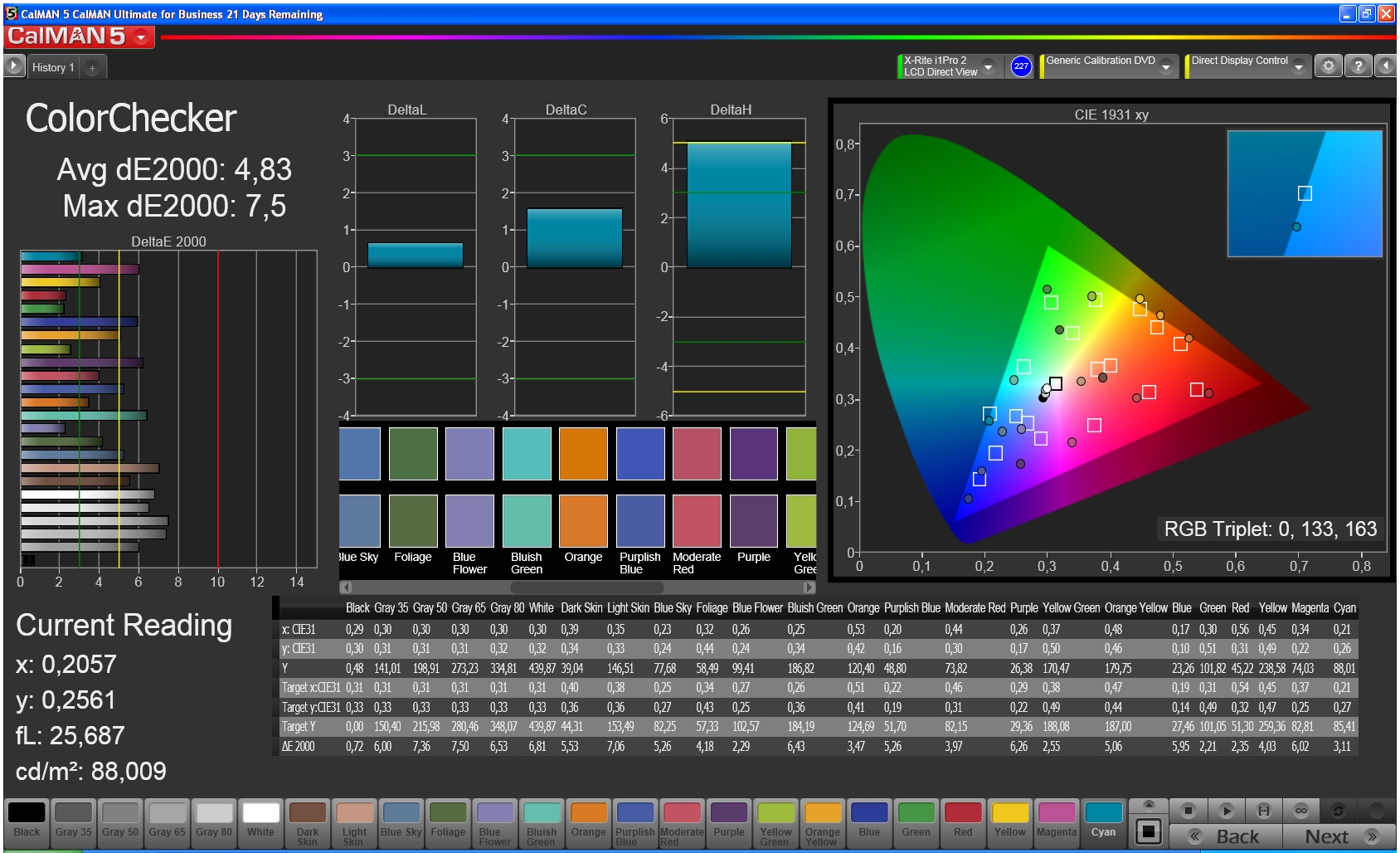 ΔE ColorChecker Calman: 4.83 | ∀{0.5-29.43 Ø4.78}