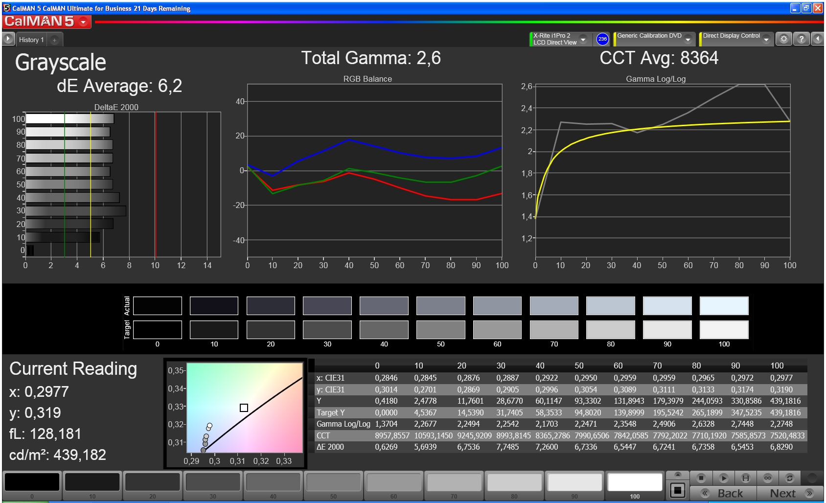 ΔE Greyscale Calman: 6.2 | ∀{0.09-98 Ø5}