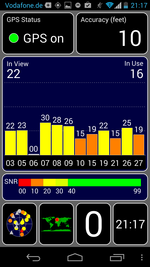 Das GPS-Modul darf natürlich nicht fehlen und kommt zusätzlich mit GLONASS zurecht. Die Verbindung zu den jeweiligen Satelliten ist schnell hergestellt und ist bereits innerhalb geschlossener Räume relativ präzise. Bei unserem Test gegen das Garmin Edge 500 muss sich das Moto G klar geschlagen geben. In Summe unterschlägt das Smartphone ca. 400 Meter. Besonders bei dem Straßenabschnitt mit einer engen Kurve überfordern wir das Moto G, dafür ist relativ hohe Genauigkeit im Waldabschnitt gegeben.