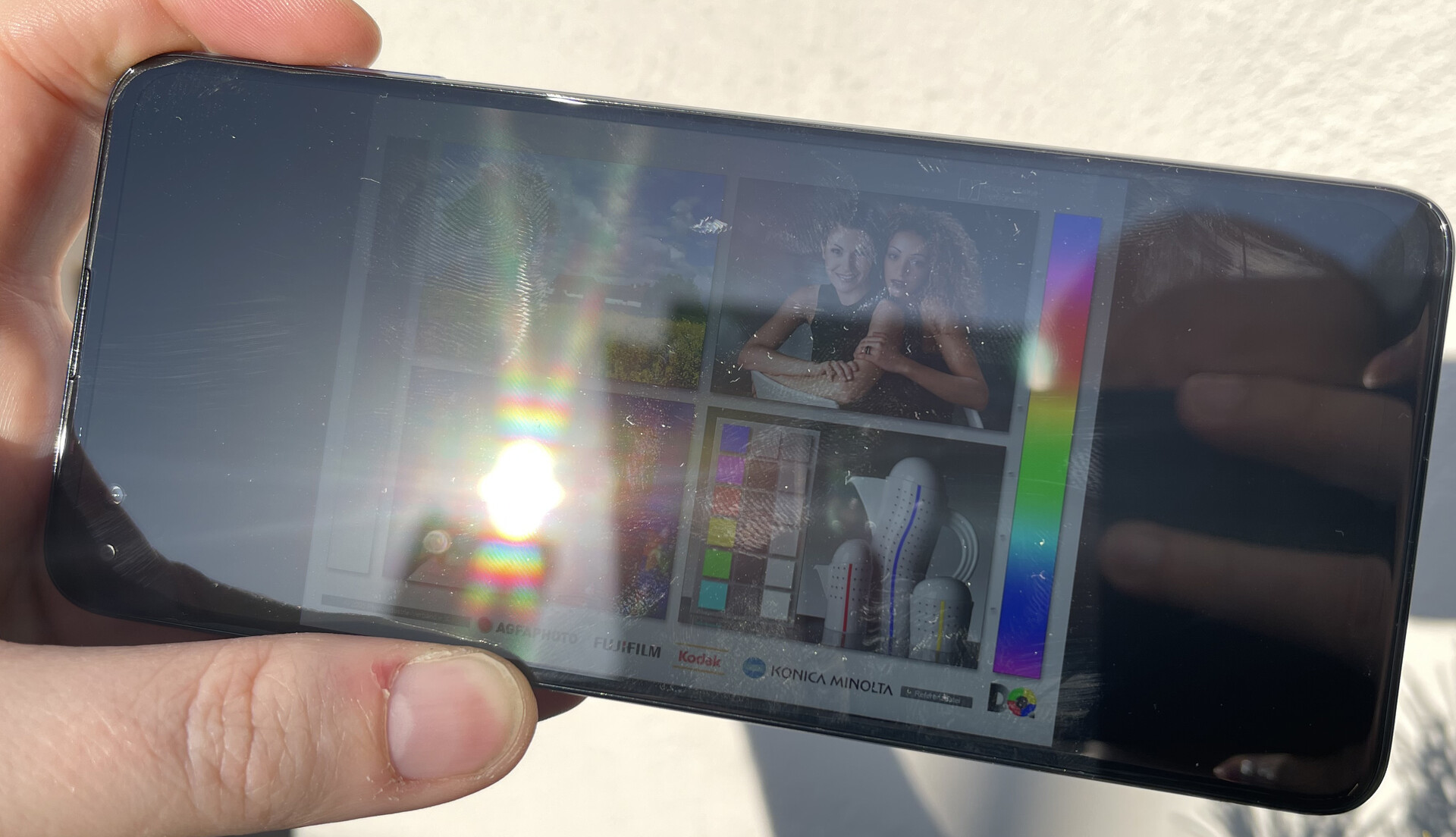 Die erweiterte 1.080p-Auflösung ist Standard in der Preisklasse, für eine gute Bilddarstellung braucht man üblicherweise auch nicht mehr. In Sachen Bildschirmhelligkeit ist das Moto G100 nicht schlecht, mit 535 cd/m² im Schnitt aber auch deutlich dunkler als beispielsweise das Samsung Galaxy A52 5G.