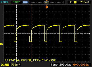 Das Display flackert mit 2358 Hz (im schlimmsten Fall, eventuell durch Pulsweitenmodulation PWM) bei einer eingestellten Helligkeit von 6 % und darunter. Darüber sollte es zu keinem Flackern kommen. Die Frequenz von 2358 Hz ist sehr hoch und sollte daher auch bei empfindlichen Personen zu keinen Problemen führen. Im Vergleich: 53 % aller getesteten Geräte nutzten kein PWM um die Helligkeit zu reduzieren. Wenn PWM eingesetzt wurde, dann bei einer Frequenz von durchschnittlich 8101 (Minimum 5, Maximum 343500) Hz. | |||