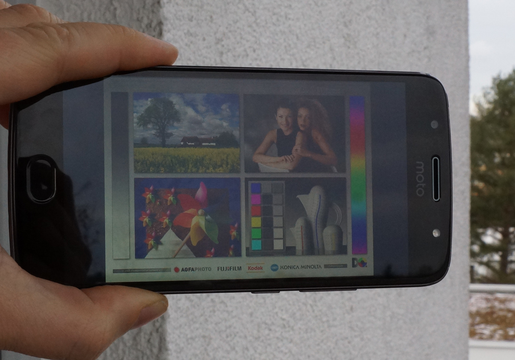 Der Schwarzwert von 0,43 cd/m² ist deutlich höher als beim Vorgänger, das führt zusammen mit der geringeren Helligkeit zu einem deutlich schlechteren Kontrastverhältnis. 1.140:1 ist für sich genommen wiederum kein schlechtes Kontrastverhältnis, auch die meisten Vergleichsgeräte finden sich auf ähnlichem Niveau. Die lebendigen und kräftigen Farben des Vorgängers erreicht das Motorola Moto G5s damit aber nicht, die Darstellung wirkt aber immer recht natürlich.