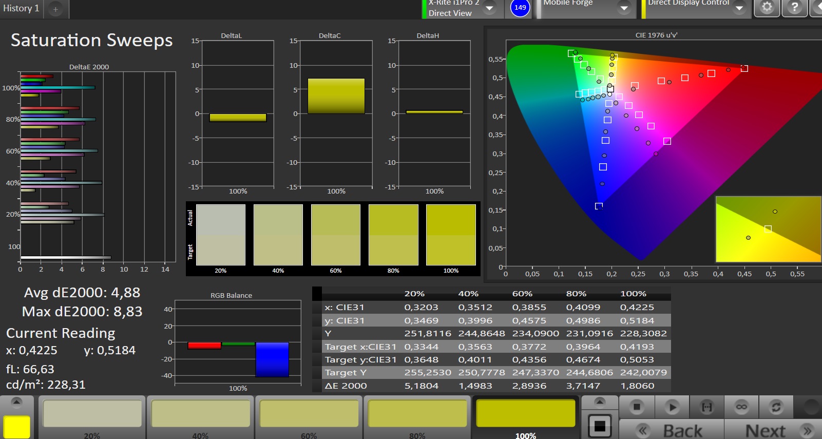 | Colorchecker dE 2000 max. * | 8.74 | 6.5 26% | 7.88 10% | 19.9 -128% | 7.95 9% |