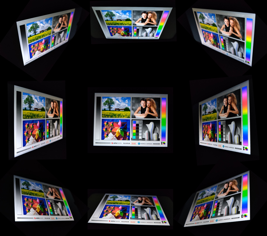 Die Blickwinkel sind dank IPS-Technologie sehr gut, allenfalls leichte Farbverschiebungen aus sehr flachen Winkeln sind sichtbar.
