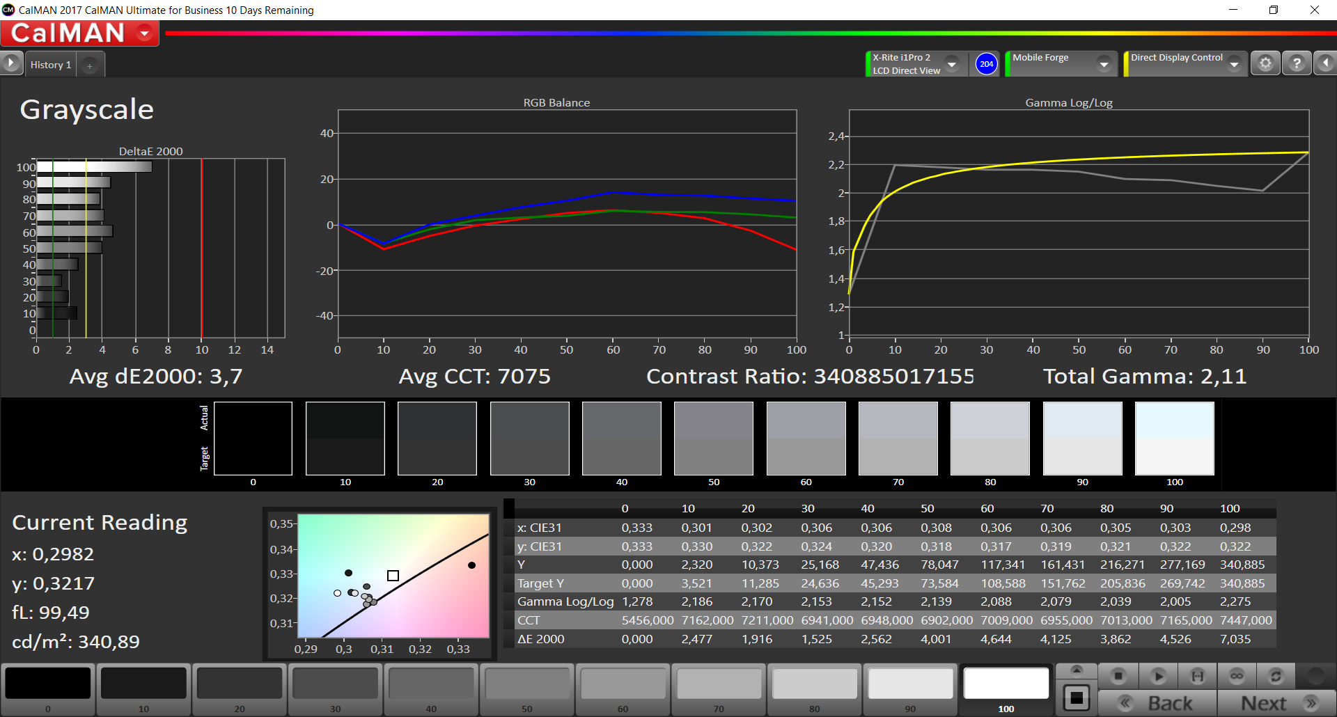ΔE Greyscale Calman: 3.7 | ∀{0.09-98 Ø5}