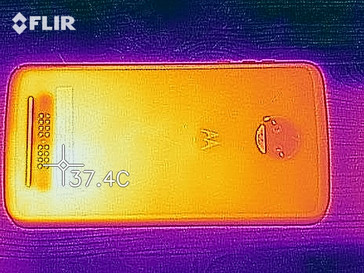 Mit einer Betriebstemperatur, die im Leerlauf nur knapp die 23-°C-Marke überschreitet und selbst nach einer Stunde unter Volllast auf maximal 35,4 °C ansteigt, bleibt das Moto Z2 Force in jeder Situation angenehm kühl. Intern kann es aber zu einem leichten Throttling kommen. Lässt man den anspruchsvollen Manhattan-Benchmark des GFXBench-Akkutests 30-mal hintereinander durchlaufen, bricht die Performance nach etwa 4 Durchläufen ein und sinkt dann bis zu Durchgang Nummer 30 kontinuierlich weiter ab. Weil sich der Leistungsabfall jedoch in engen Grenzen hält, sollte für alle Anwendungen und Games immer noch mehr als genug Rechenpower übrigbleiben – merken dürfte man von einem Throttling daher nichts. Beim weniger rechenintensiven T-Rex-Benchmark des GFXBench-Akkutests bleibt die Performance über die gesamten 30 Durchläufe hinweg unverändert hoch.