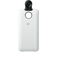 Noch mehr Spielereien erlaubt die optionale Moto 360 Camera, mit der man 360-Grad-Fotos (19 MP) oder -Videos (4K oder FullHD) aufnehmen kann. Nach Anstecken dieses Moto Mods erweitert sich das Kameramenü automatisch um die passenden 360-Grad-Funktionen wie etwa eine sphärische Ansicht oder die gleichzeitige Darstellung des Haupt- und Webcam-Bildes.