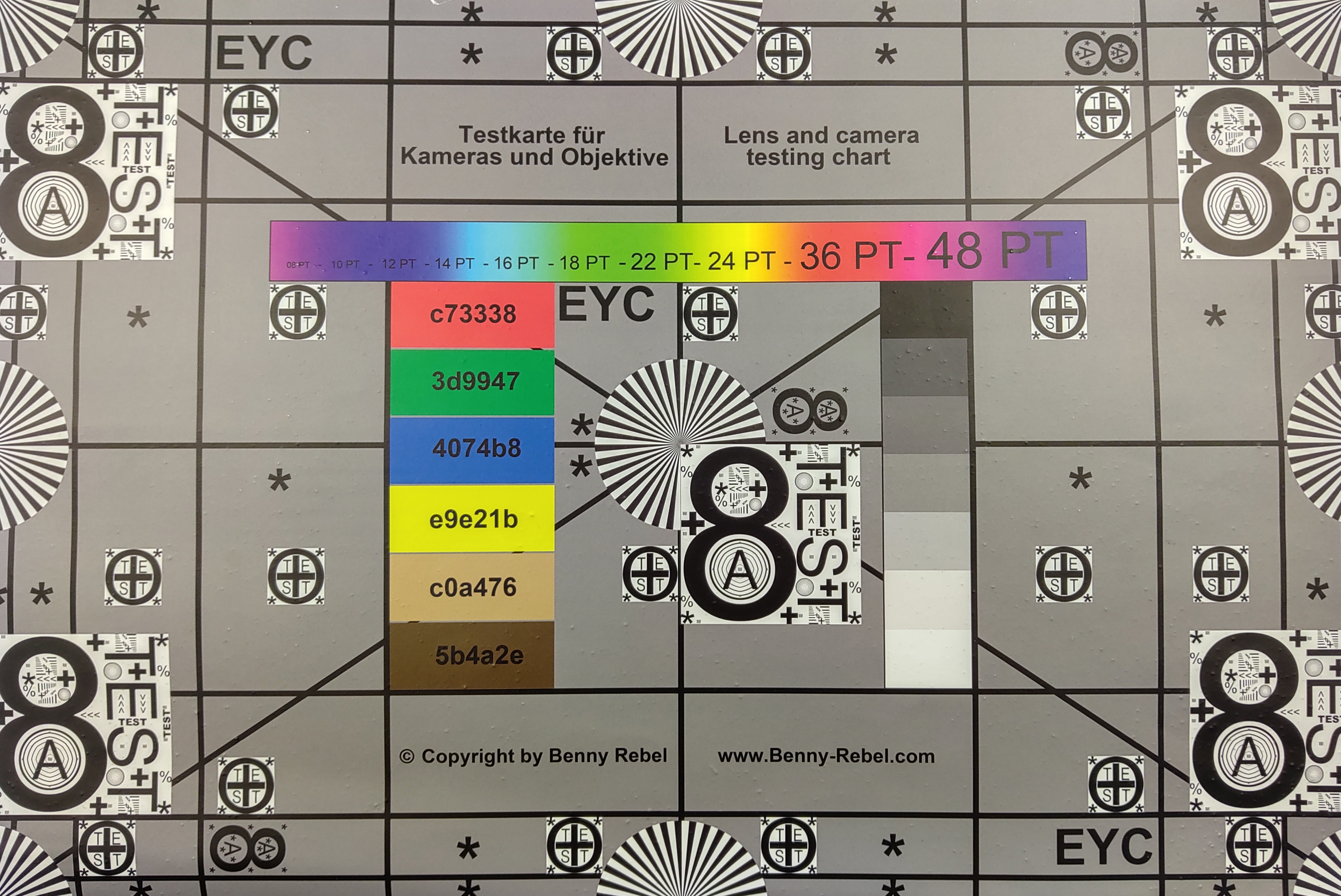 Szene 1Szene 2Szene 3Im Labor muss sich die Hauptkamera noch einmal beweisen, die Farbdarstellung unter vollem Licht ist tatsächlich recht originalgetreu und unter schwachem Licht ist zumindest noch ein wenig von den Bildern zu erkennen. Unser Testchart ist aber ebenfalls nicht ganz scharf dargestellt und wirkt zudem recht blass.