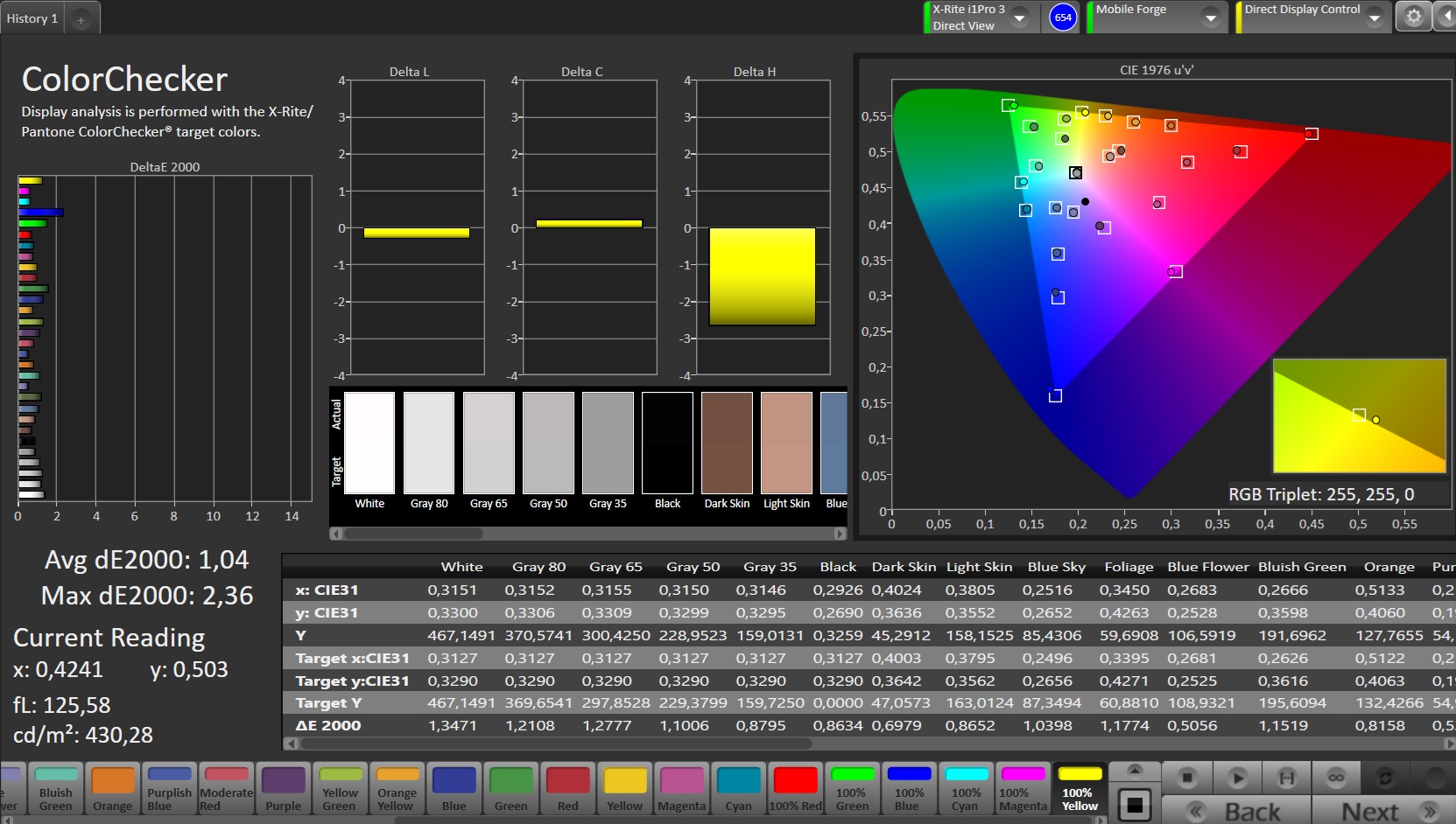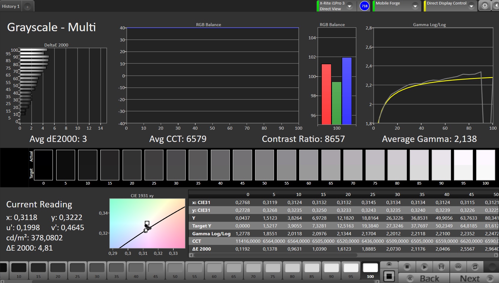 ΔE ColorChecker Calman: 1.04 | ∀{0.5-29.43 Ø4.77}