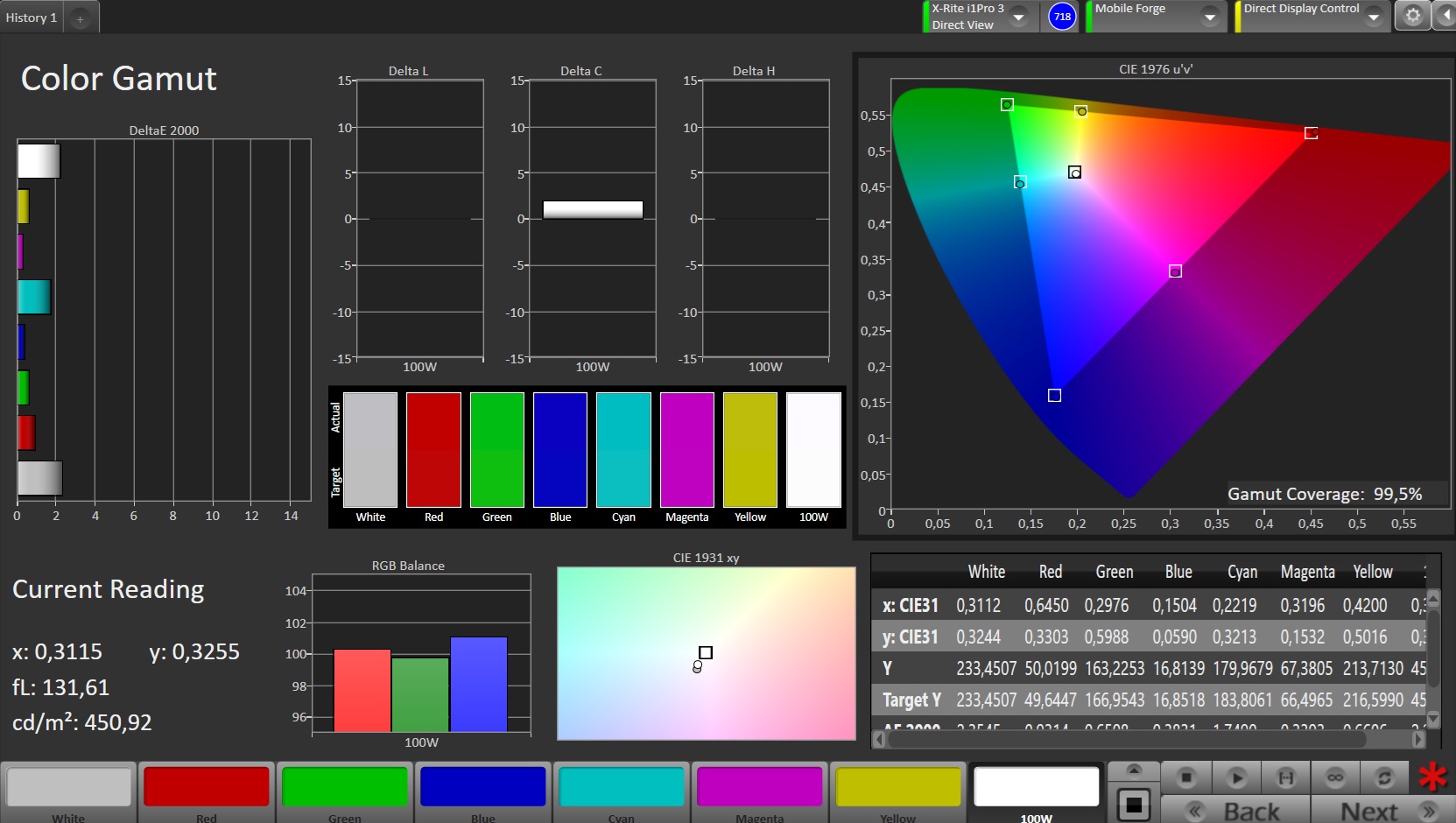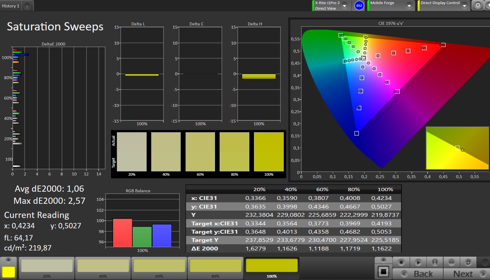 ΔE ColorChecker Calman: 0.84 | ∀{0.5-29.43 Ø4.77}