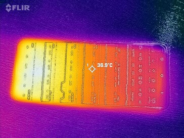 (±) Auf der Unterseite messen wir eine maximalen Wert von 43 °C (im Vergleich zum Durchschnitt von 34 °C).