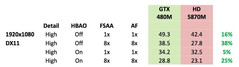 Die Nvidia Werte könnten wir im Test nicht ganz erreichen, trotzdem blieb die GTX 480M mit unseren Ergebnissen noch vor der HD 5870 mit Detailstufe "ultra".