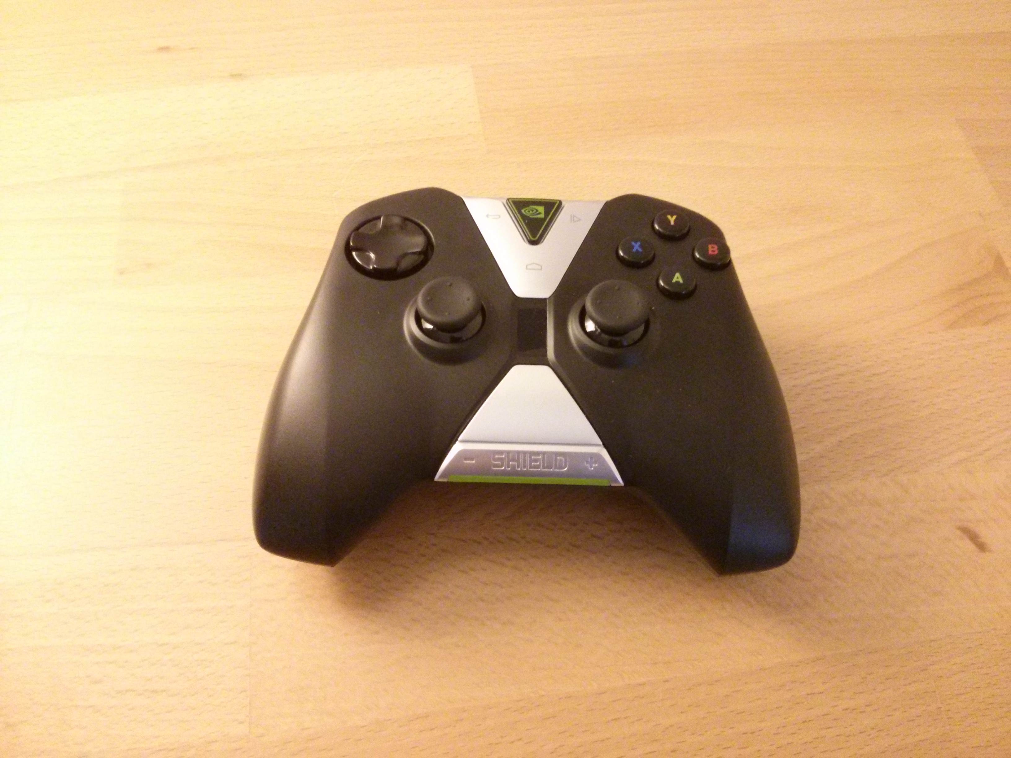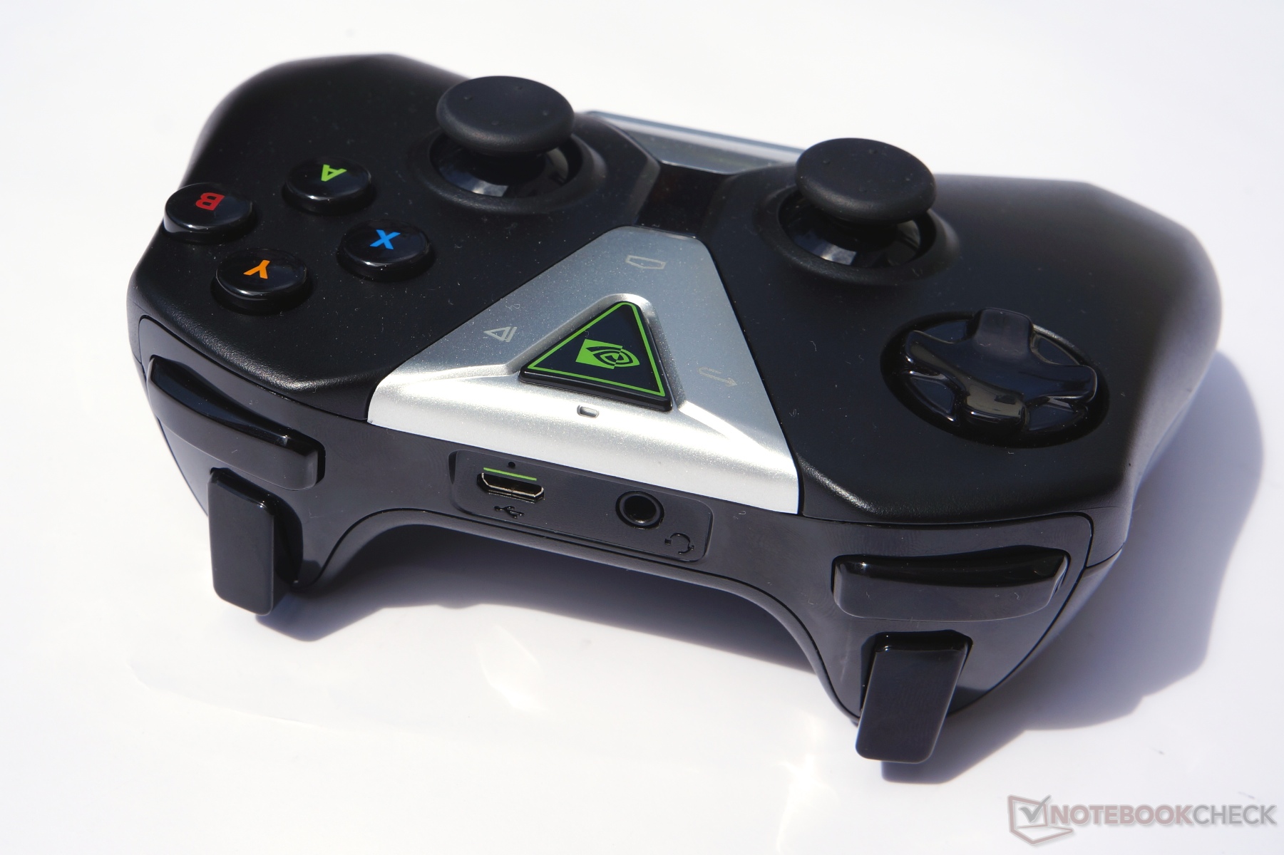 Für 60 Euro bietet Nvidia optional ein Wireless Gamepad an, welches sich über eine proprietäre WiFi-Direct-Verbindung mit dem Shield Tablet oder auch der Shield Console verbinden kann. Per USB-Kabel wird der Controller geladen. Laut Nvidia verbindet er sich damit aber auch direkt mit dem Shield Tablet. Das Gamepad bietet eine Reihe von zusätzlichen Features. Neben einem Mikrofon und Headset Port findet man im unteren Bereich auch ein kleines trapezförmiges Touchpad. Dieses Clickpad konnte im Test jedoch nicht überzeugen und dient nur als Notlösung, um z. B. bei manchen Spielen im Menü schnell etwas einstellen zu können. Am PC wird der Controller als USB-Eingabegerät erkannt, jedoch wird damit nur das kleine Touchpad angesprochen, und auch dies funktionierte im Test nicht einwandfrei. Jedoch sollte es in Zukunft auch als PC Gamepad einsetzbar sein.