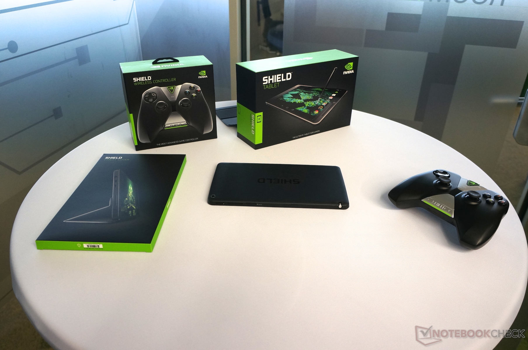 Das Nvidia Shield Tablet ist derzeit in zwei Varianten erhältlich: Die hier von uns getestete 16-GB-Version und eine 32-GB-Version mit LTE Chip (siehe unser Test Update). Beide bieten den brandneuen Nvidia Tegra K1 SoC mit 4+1 Cortex-A15-Prozessor und 2 GB Speicher. Als Besonderheit bietet Nvidia wie schon bei der Shield Konsole die Unterstützung für GameStream, um Spiele vom heimischen PC auf dem Tablet oder auch Fernseher streamen zu können. Dazu gibt es einen optionalen Wireless Controller. Ein integrierter Stylus wie im Tegra Note 7 und ein Full-HD 1920 x 1200 Display runden das Paket ab.
