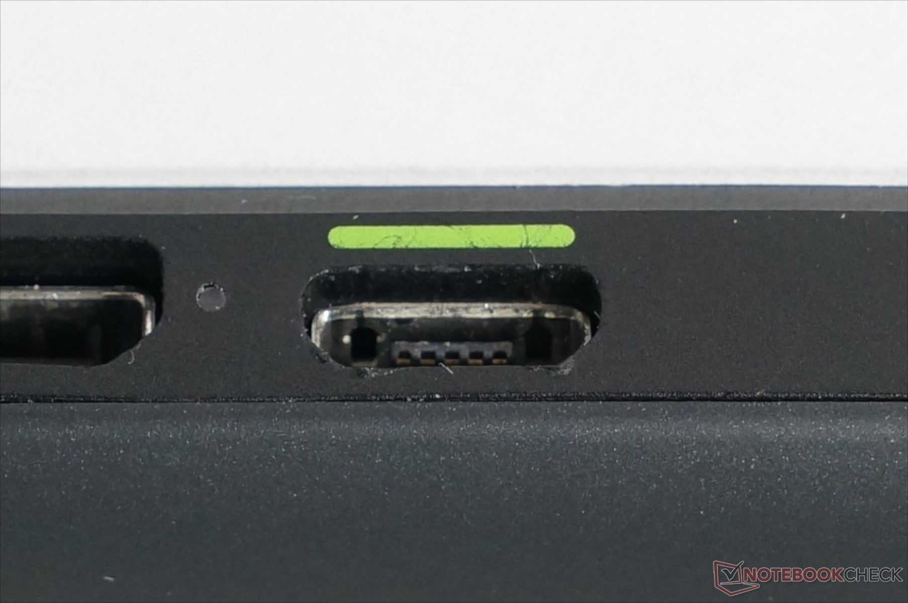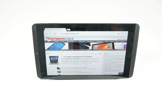Die Verwindungssteifigkeit unseres Testmodells war auch nicht ideal: Bei geringen Verwindungen oder Druck auf den Bildschirm zeigt das TFT Panel bereits leichte Farbverfälschungen an dieser Position. Außerdem fiel auf, dass die Rückseite minimal klapprig montiert war und nicht auf jeder Stelle fest auflag.