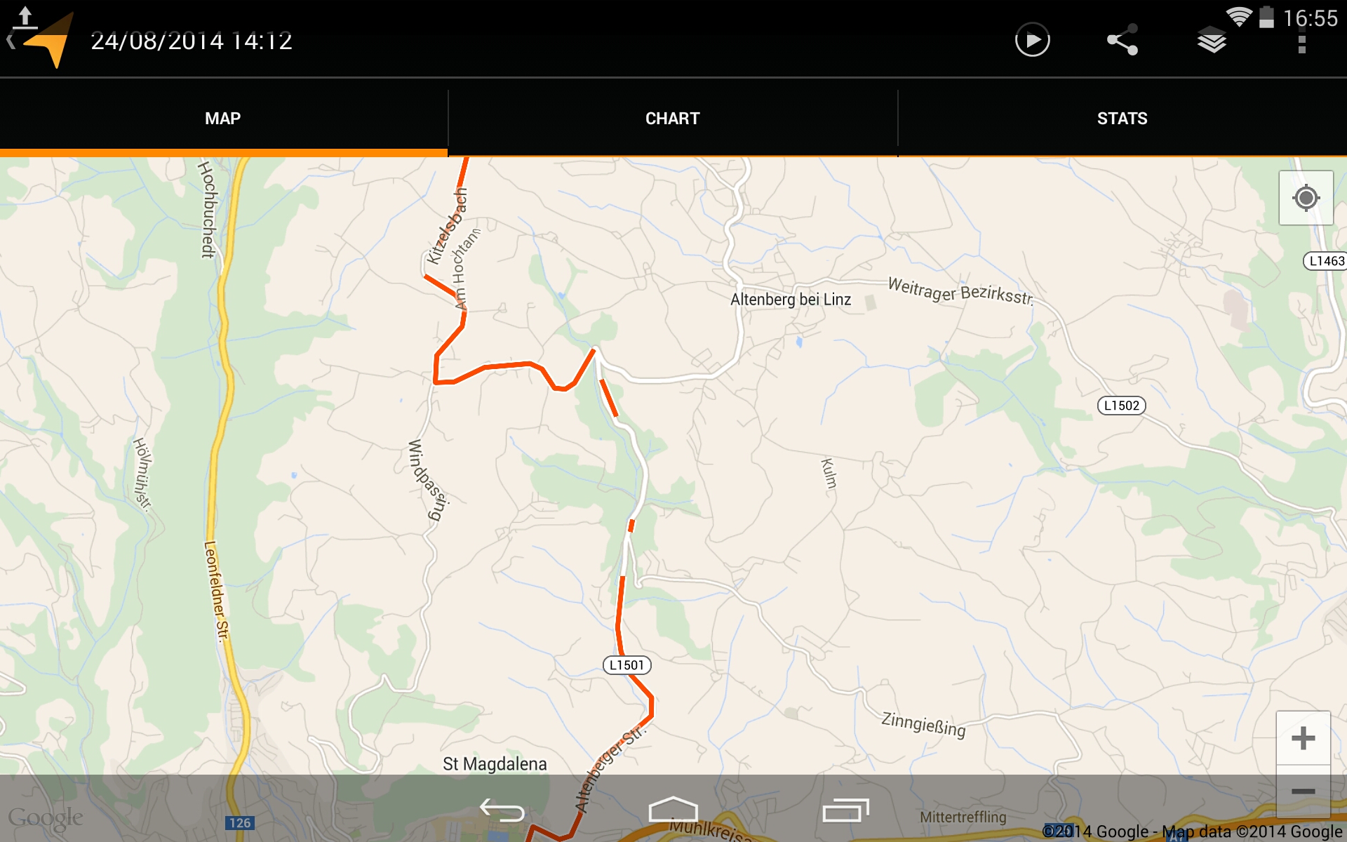 Das verbaute GPS-/GLONASS-Modul fand im Test relativ schnell die ersten Satelliten. Der erste "Fix" dauerte aber oft mehrere Minuten. Danach funktionierte die Aufzeichnung bei einer Teststrecke mit dem Fahrrad gut, im Auto brach die Verbindung bei einer Walddurchfahrt jedoch ab.