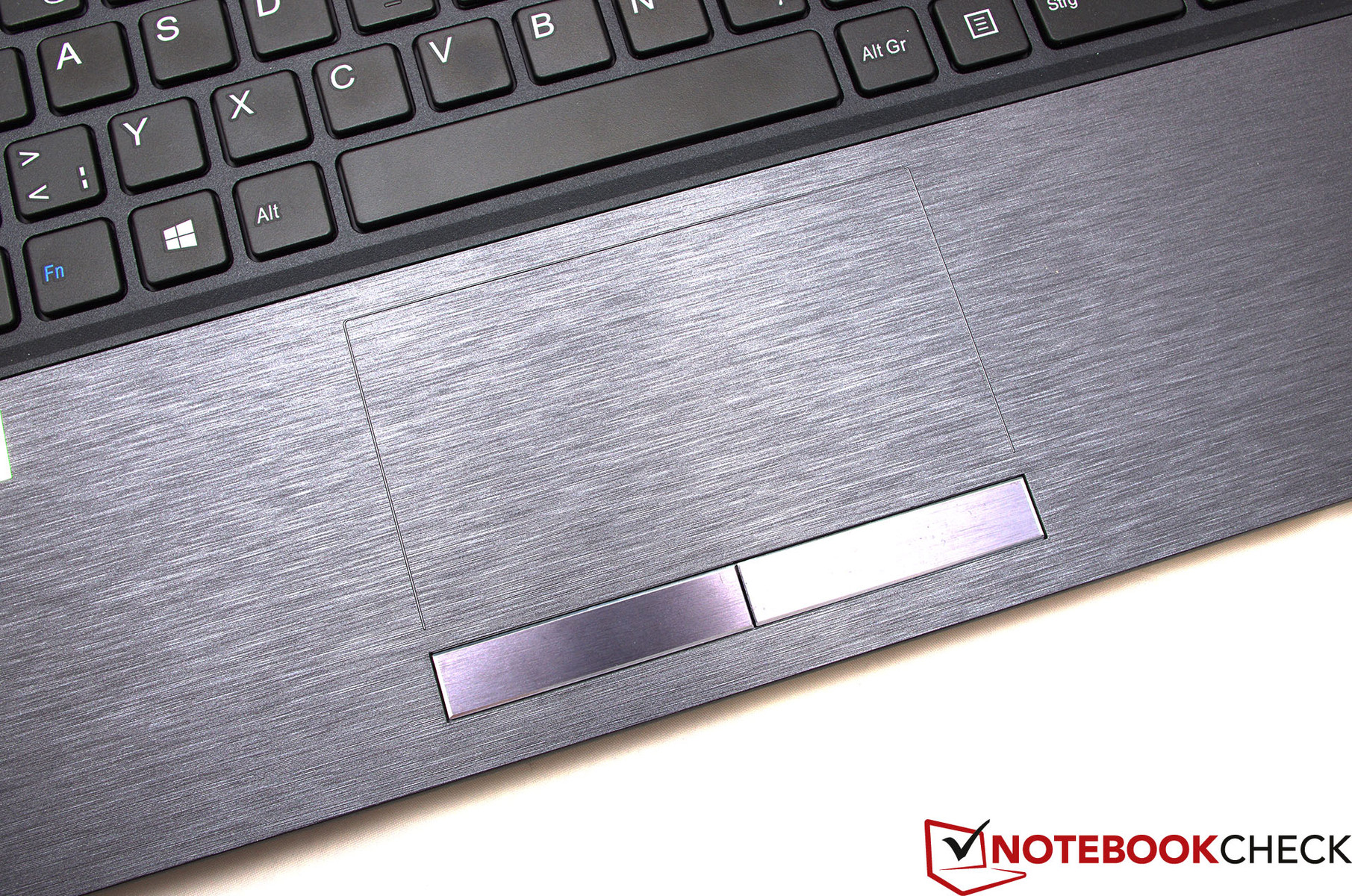 Das großzügig dimensionierte Touchpad gleicht sich in seiner Optik den umliegenden Kunststoff-Handballenauflagen an. Dies ist optisch gefällig gelöst, die recht rauhe Oberfläche des Eingabegeräts ist allerdings gewöhnungsbedürftig und weist keine optimalen Gleiteigenschaften auf. Die Reaktion ist derweil sehr empfindlich und recht präzise. Ebenfalls positiv: Die dedizierten Maustasten, die auch eine blinde Bedienung zuverlässig gewährleisten.