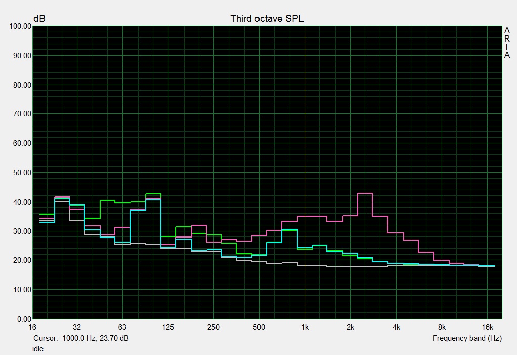 | Idle avg * (dB) | 35 | 32 9% | 35 -0% | 34 3% | 33.2 5% | 34 3% |