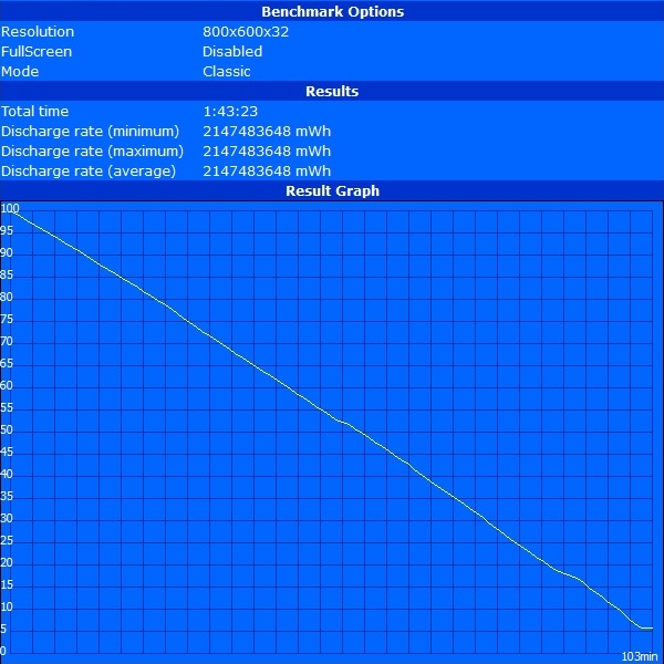 Im Reader's von Battery Eater, der lediglich ein Textdokument durchscrollt, brachte es das Notebook auf knapp 4,5 Stunden. Wer die Leuchtkraft auf das Maximum stellt und rechenintensive Anwendungen konsumiert, ist höchstens zwei Stunden mobil.