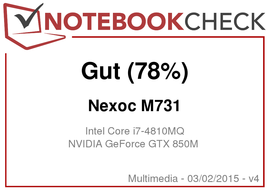 Nimmt man alle Aspekte zusammen, handelt es sich beim Nexoc M731 um ein solides und angenehm flottes Allround-Notebook, das die Lücke zwischen Multimedia und Gaming füllt.