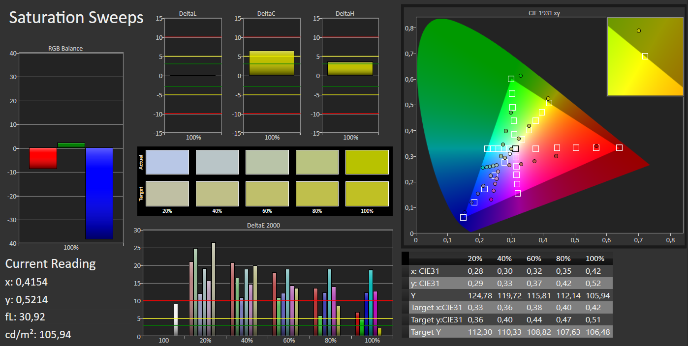 ΔE ColorChecker Calman: 14.36 | ∀{0.5-29.43 Ø4.78}