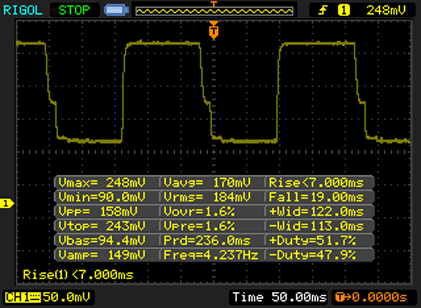 | 26 ms ... steigend ↗ und fallend ↘ kombiniert | ↗ 7 ms steigend | |