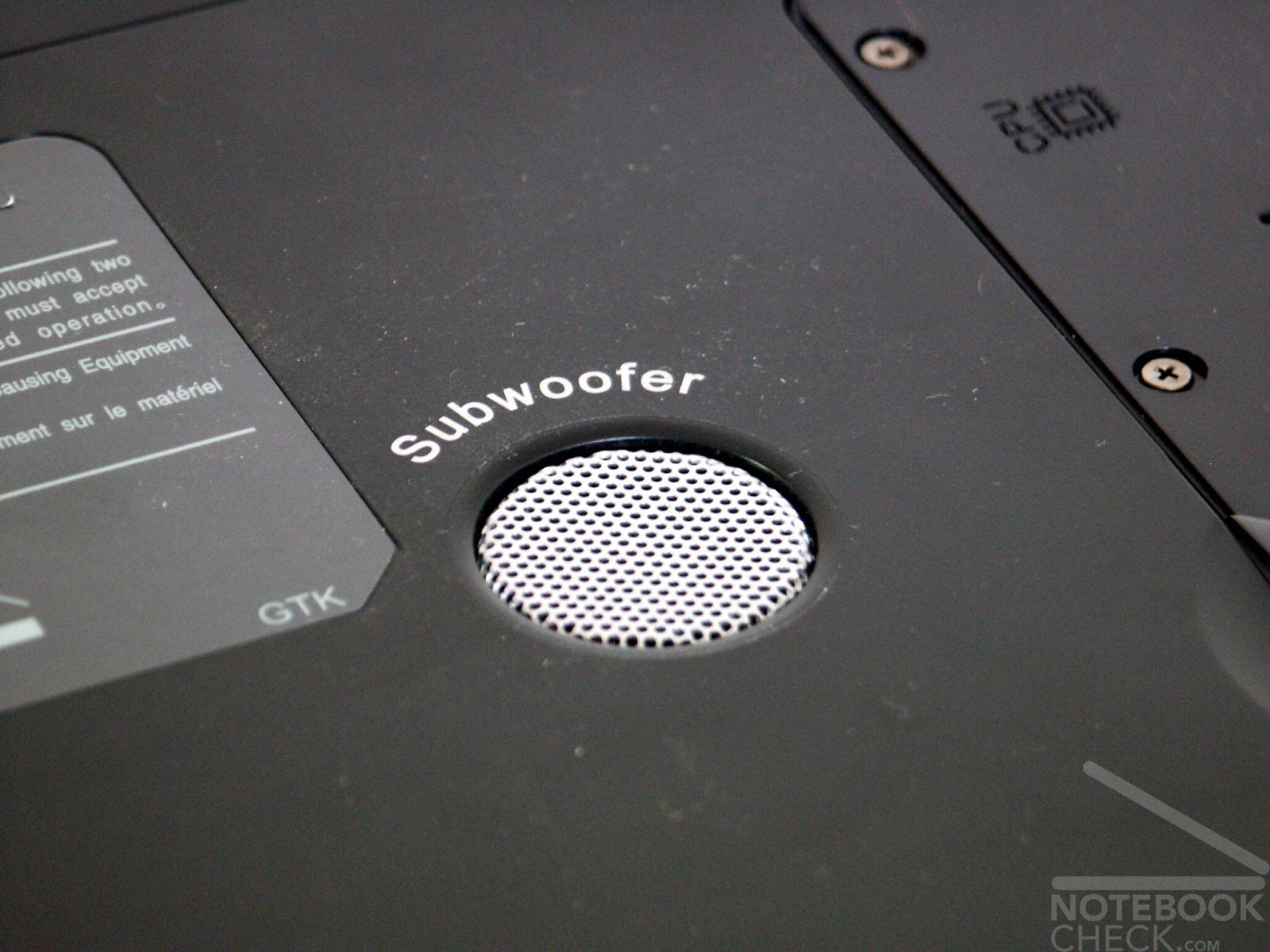 An der Unterseite ist ein mit großen Lettern gekennzeichneter Subwoofer zu finden. Eine Beschreibung der Wirksamkeit dieses zusätzlichen Features finden Sie in der Rubrik Emissionen.