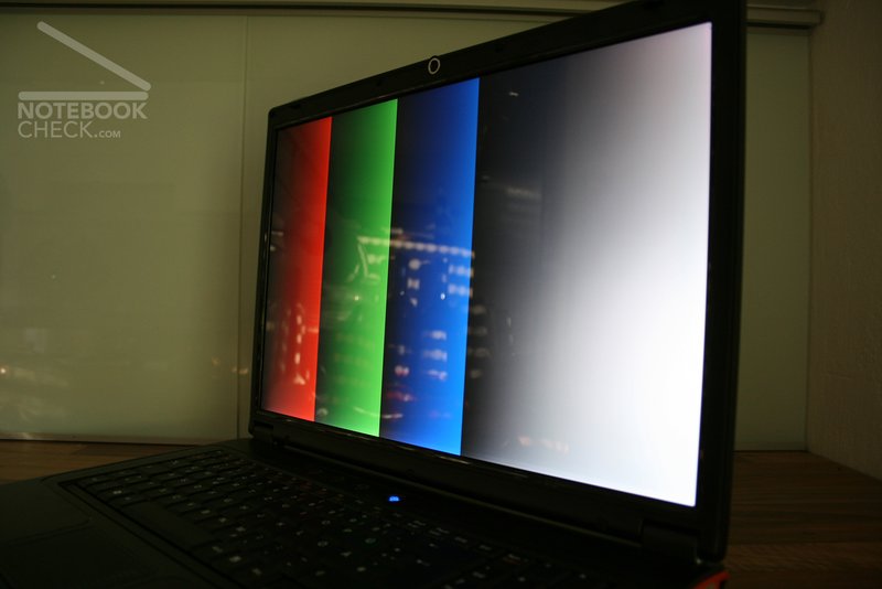 Das Nexoc Osiris E705 ist mit einem 17" WUXGA FullHD Bildschirn mit 1920x1200 Auflösung ausgestattet. Dies führt unter Microsoft Windows Vista und noch mehr bei XP zu einer sehr kleinen Darstellung. Das Display ist sehr hell, wir haben durchschnittliche 207.5 cd/m² gemessen. Die Ausleuchtung ist mit 74.7 % eher mittelmäßig.