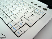 Die ebenso wie das umliegende Gehäuse in strahlendes weiß getauchte Tastatur macht einen etwas gedrängten Eindruck. So wurden alle Tasten in eine rechtwinkelige Form gepresst. Dabei muss die Formulierung "gepresst" leider nochmals unterstrichen werden, da viele Tasten doch sehr klein ausgefallen sind. Hierbei ist jedoch darauf hinzuweisen, dass unser Testsample mit einer amerikanischen Tastatur ausgestattet war. Bei der deutschen Version sind daher Abweichungen möglich.