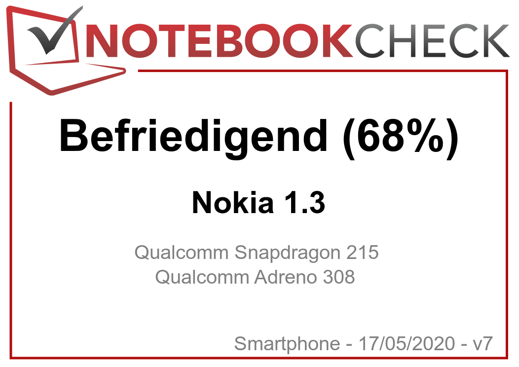 | 68.3 % v7 (old) | v7 (old) | 05 / 2020 | Nokia 1.3 SD 215, Adreno 308 | 155 g | 16 GB eMMC Flash | 5.71" | 1520x720 | |