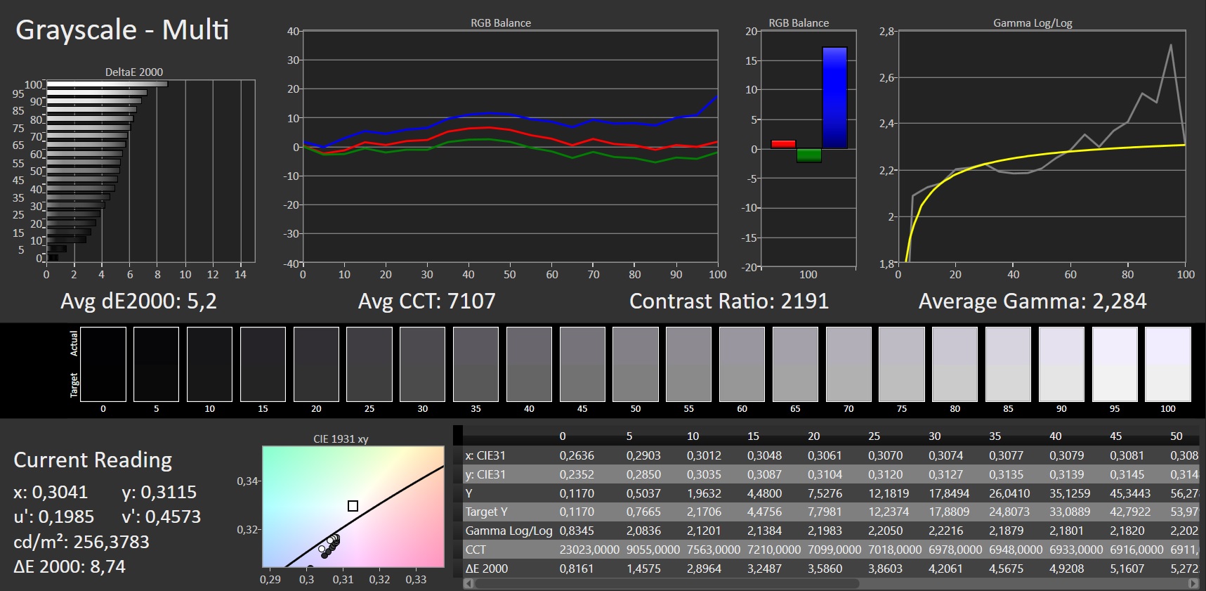 ΔE Greyscale Calman: 5.2 | ∀{0.09-98 Ø5}