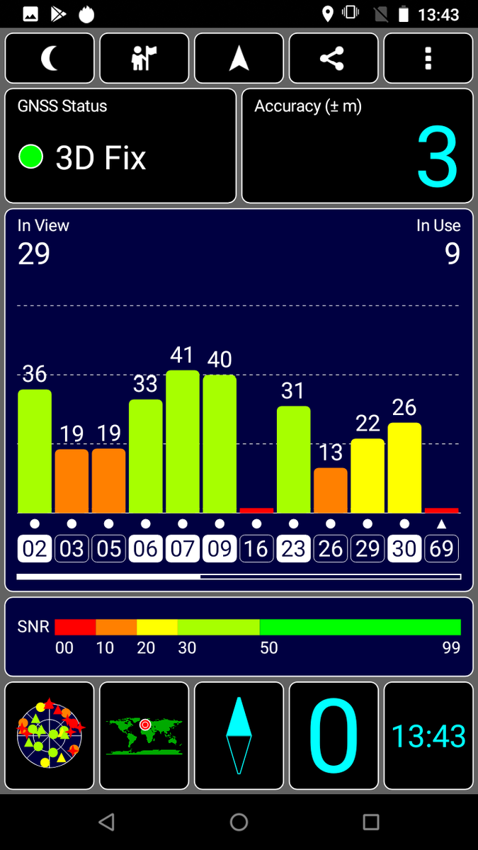 Mit der App "GPS Test" überprüfen wir, wie gut das Nokia 2.1 seinen Standort bestimmen kann. Dabei zeigt sich, dass eine Ortung im Freien auf bis zu drei Meter genau möglich ist. In geschlossenen Räumen gelingt es dem Android-One-Smartphone hingegen nicht eine Satellitenverbindung herzustellen. Für die Standortbestimmung kann das Nokia-Handy auf GPS/AGPS, GLONASS und Beidou zurückgreifen.