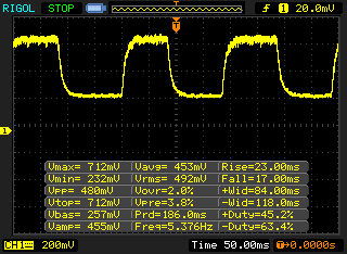 Das Display flackert mit 1866 Hz (im schlimmsten Fall, eventuell durch Pulsweitenmodulation PWM) bei einer eingestellten Helligkeit von 10 % und darunter. Darüber sollte es zu keinem Flackern kommen. Die Frequenz von 1866 Hz ist sehr hoch und sollte daher auch bei empfindlichen Personen zu keinen Problemen führen. Im Vergleich: 53 % aller getesteten Geräte nutzten kein PWM um die Helligkeit zu reduzieren. Wenn PWM eingesetzt wurde, dann bei einer Frequenz von durchschnittlich 8121 (Minimum 5, Maximum 343500) Hz. | |||