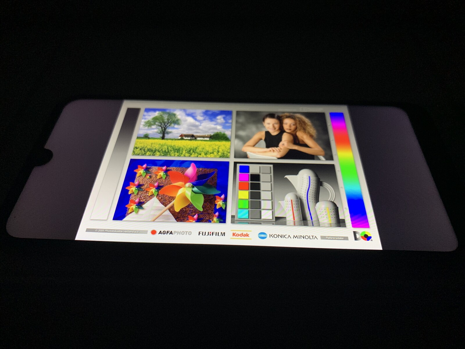 Der Schwarzwert des Handydisplays ist recht hoch: 0,55 cd/m², sodass dunkle Flächen einen sichtbaren Grauschleier haben, zumindest bei hoch eingestellter Helligkeit. Daraus ergibt sich auch ein mäßiges Kontrastverhältnis von 755:1, subjektiv wirken Farben auf dem Display dadurch etwas wenig leuchtstark.