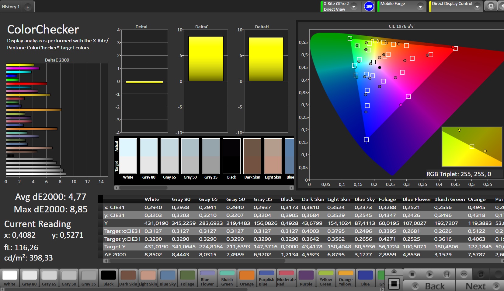 ΔE ColorChecker Calman: 4.77 | ∀{0.5-29.43 Ø4.77}