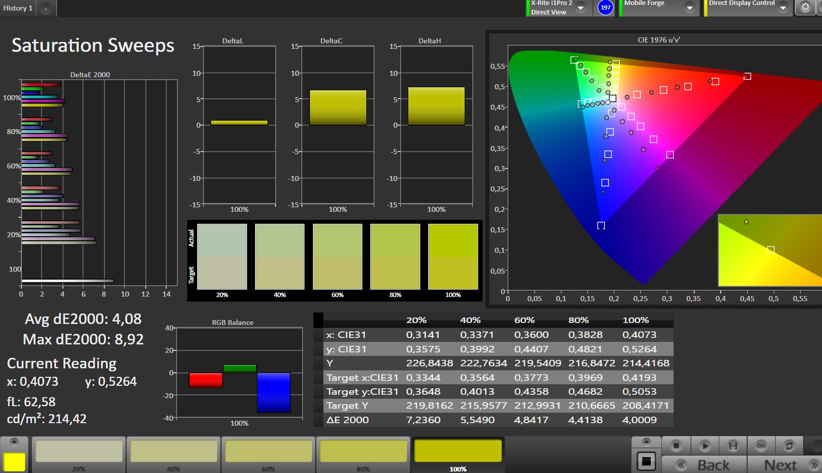 | Delta E Colorchecker * | 4.77 | 3.8 20% | 5.49 -15% | 4.43 7% |