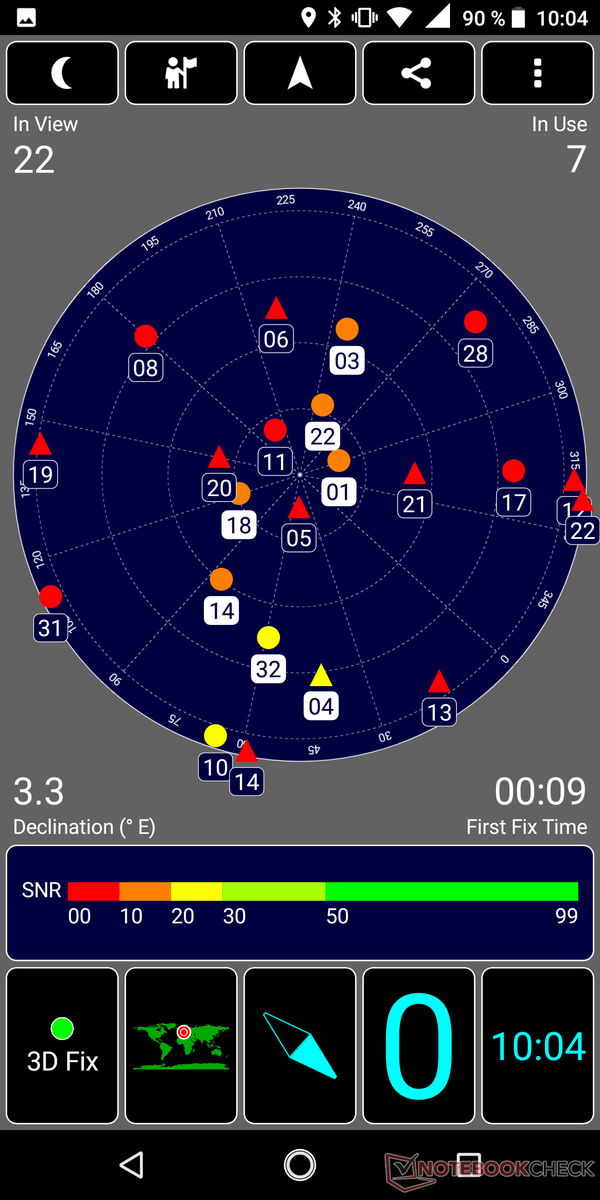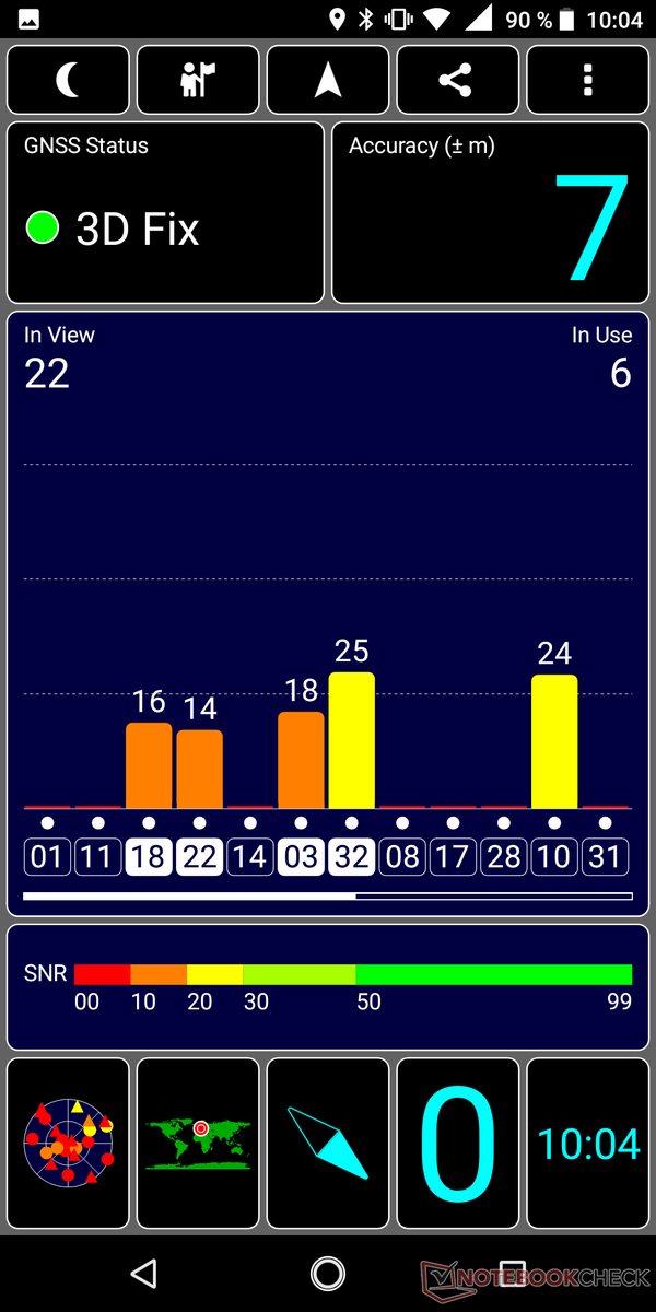 Um die Tauglichkeit des Handys zur Rettung von Hänsel und Gretel aus kargen neuseeländischen Wäldern der 6-stündigen Neuverfilmung von Peter Jackson zu testen, machen wir sowohl einen synthetischen Test mit "GPS Test" als auch eine kleine Radtour durch den Großstadtdschungel für einen Geländetest. Auf der Sonnenseite präsentiert sich das Nokia im einfachen Test mit einer gemessenen Genauigkeit von 3 Metern. Dabei werden sowohl Satelliten aus dem amerikanischen GPS-Netzwerk als auch russische GLONASS-Satelliten zur Positionsbestimmung genutzt. Beim Verlassen des Außenbereichs reduziert sich die Ortung auf 7 Meter Variation und auch die Satellitenverbindungen nehmen schnell ab und die Verbindung selbst bricht 1-2 Meter hinter dem Fenster ab.