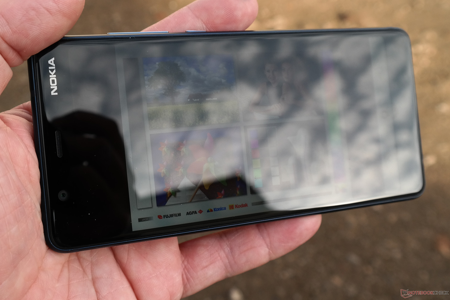 Der verbaute IPS-Bildschirm bietet eine Auflösung von 1080 x 2160, also ein Seitenverhältnis von 1:2, bei einer Bildschirmgröße von 5,5 Zoll. Daraus ergibt sich eine Pixeldichte von 439 dpi. Allerdings hat das Handy sowohl unten als auch oben noch zusätzlich dicke Ränder. Während der obere Teil die Kamera und den Lautsprecherschlitz beherbergt und damit die nicht von allen geliebte Notch vermieden wird, hat der untere Balken keinen ersichtlichen Mehrwert. Bei früheren Handygenerationen waren hier in der Regel die Android-Standard-Buttons funktional beheimatet - entweder als physische Tasten oder als Touchelemente. Seit der Hinwendung zu On-Screen-Tasten sind diese Bedienelemente weitestgehend verschwunden und ein größerer Rand an der Unterseite entsprechend überflüssig. Dass Nokia hier dennoch einen großen schwarzen Balken aufblitzen lässt, mag technische Gründe haben, wirkt aber in erster Linie wie verschwendeter Platz, der für mehr Displayfläche genutzt werden könnte.