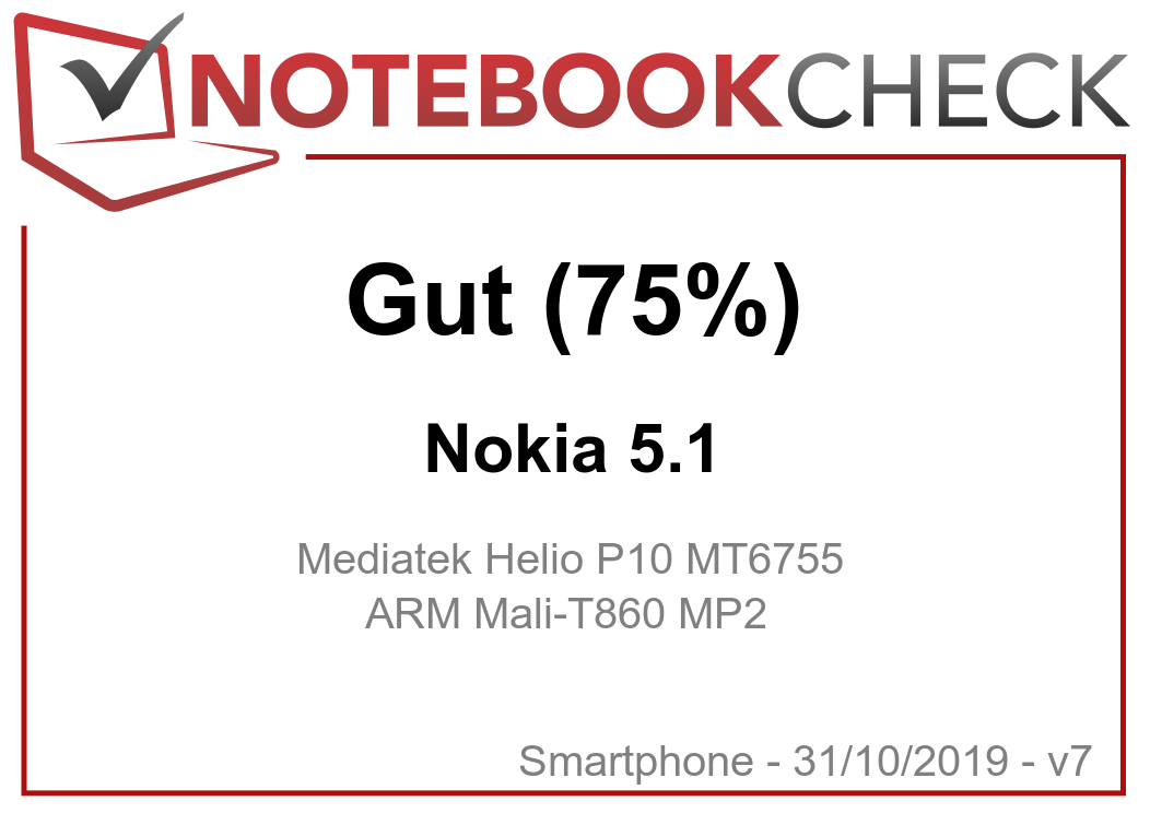 Die Bewertung wurde auf die neue Version 7 umgestellt. Das Nokia 5.1 erreichte zum Zeitpunkt des Tests 82,0 Prozent (V6).