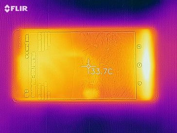 Die Oberflächentemperaturen des Nokia 6 liegen auf einem sehr niedrigen Niveau. Im Leerlauf erwärmt sich das Gerät kaum, und auch unter Last wird das Smartphone noch nicht mal handwarm. Unter Last erreicht es eine Maximaltemperatur von 35,4 °C im unteren Bereich. Im Idle-Modus liegen die Temperaturen gar nur bei 25 °C. Wenn Nokia so weiter optimiert, kann der Nachfolger als Kühlakku verwendet werden.