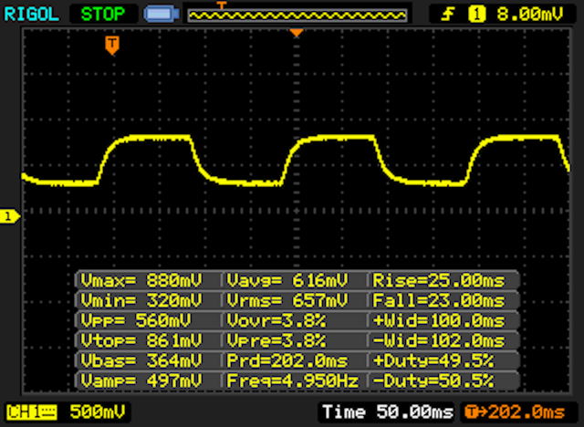 | 34 ms ... steigend ↗ und fallend ↘ kombiniert | ↗ 19 ms steigend | |
