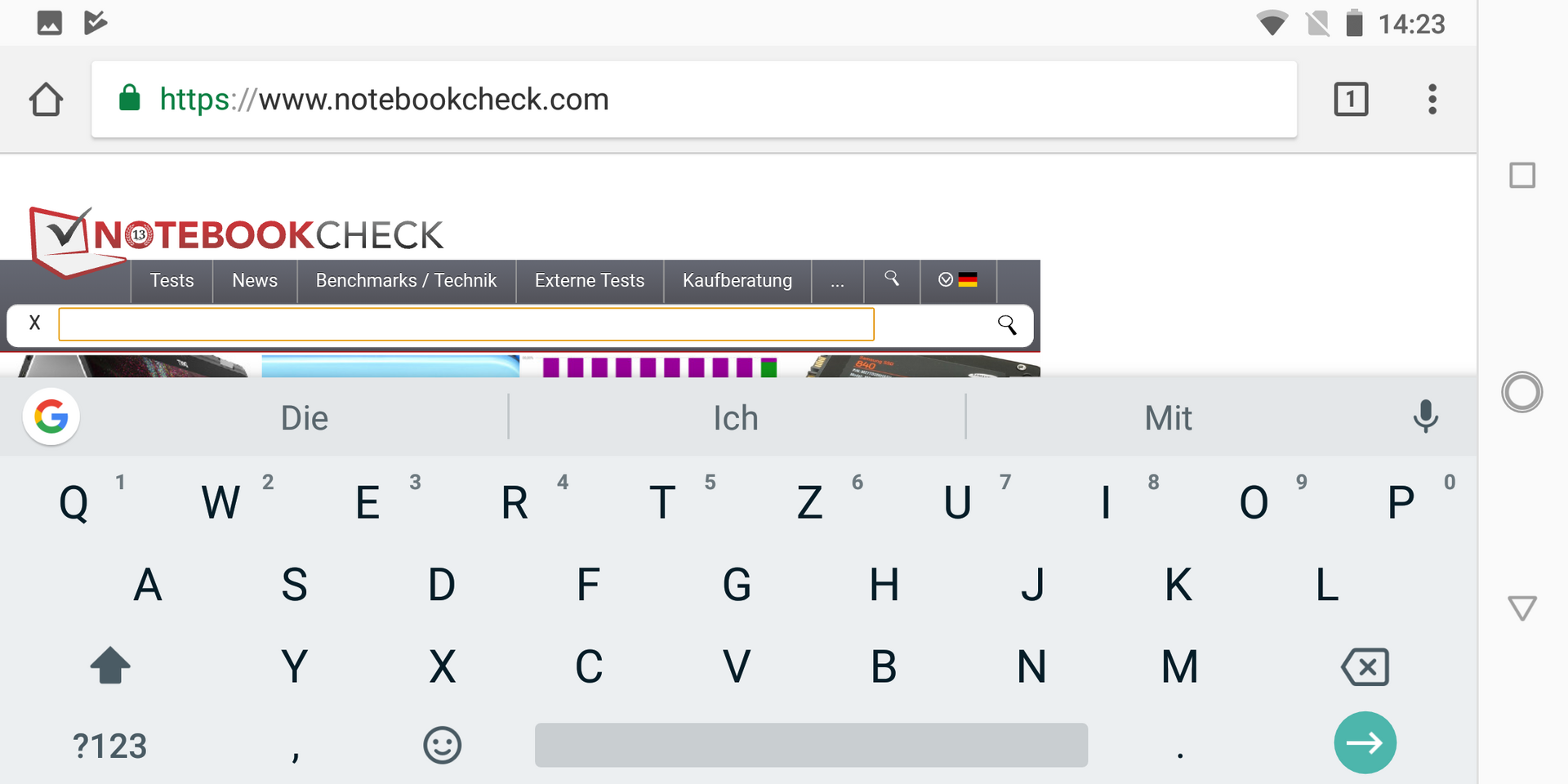 Die Bedienung erfolgt via Android-On-Screen-Tasten für „Zurück“, „Multitasking“ und „Home“. Die Eingaben auf dem 6 Zoll großen 10-Finger-Multi-Touchscreen sind präzise und die Reaktionszeiten gering. Zudem bietet die Gorilla-Glas-3-Oberfläche angenehme Gleiteigenschaften. Als virtuelle Eingabemöglichkeit ist ab Werk das Tastaturlayout von Google vorinstalliert.