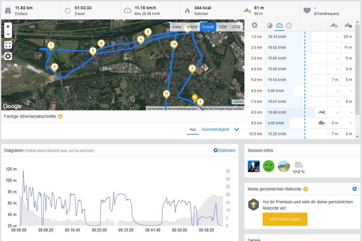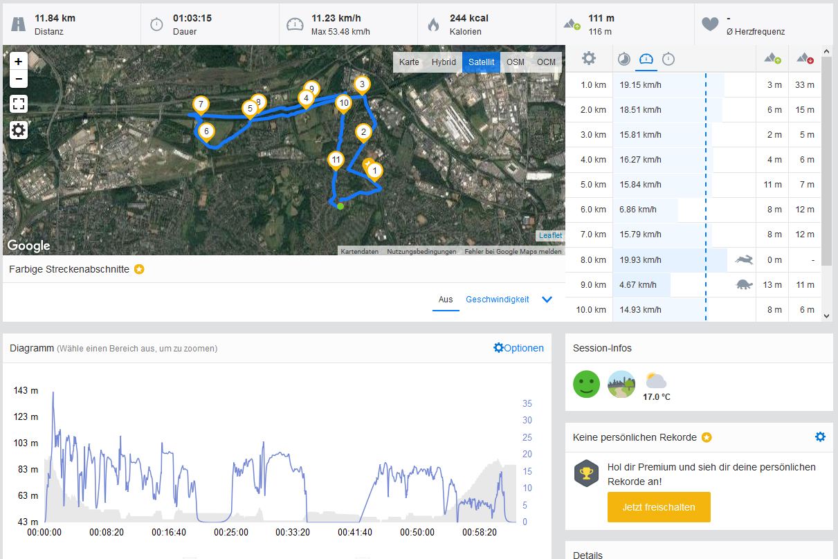 Die gleiche Genauigkeit zeigt es auf unserer knapp 12 Kilometer langen Fahrrad-Teststrecke, die wir zum Vergleich auch mit dem Profi-Navigationsgerät Garmin Edge 500 absolvieren. Alles in allem ist das Garmin-Navi zwar eine Spur präziser, doch das Nokia 8 arbeitet so genau, dass es Apps, die den Standort abfragen, mit sehr akkuraten Informationen versorgen kann.