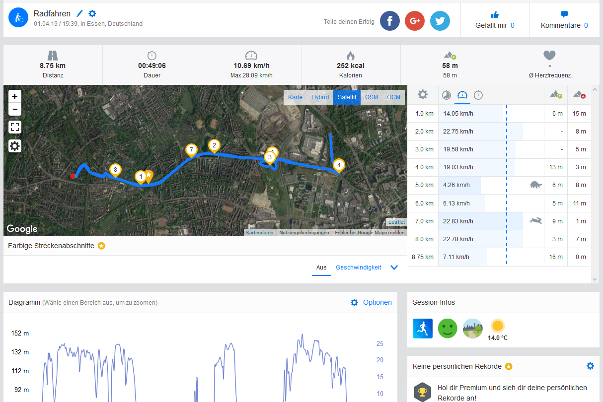 Die gleiche Akkuratesse zeigt es auch im Alltag: Auf einer knapp 9 Kilometer langen Fahrradtour verortet uns das Nokia 9 PureView fast genauso präzise wie das Profi-Navigationsgerät Garmin Edge 500, das zum direkten Vergleich mitfährt.